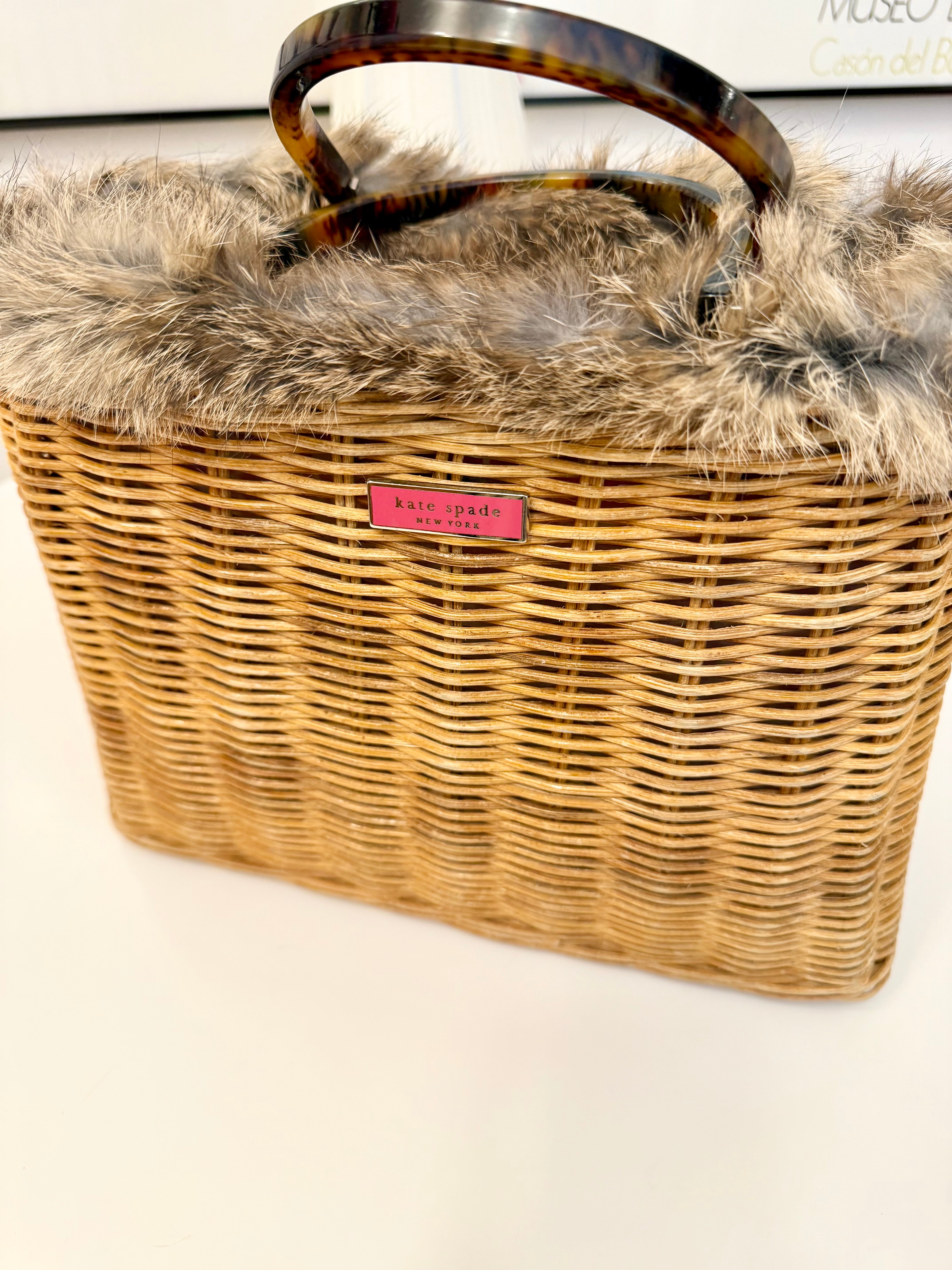 The most darling Kate Spade basket bag trimmed with fox fur....