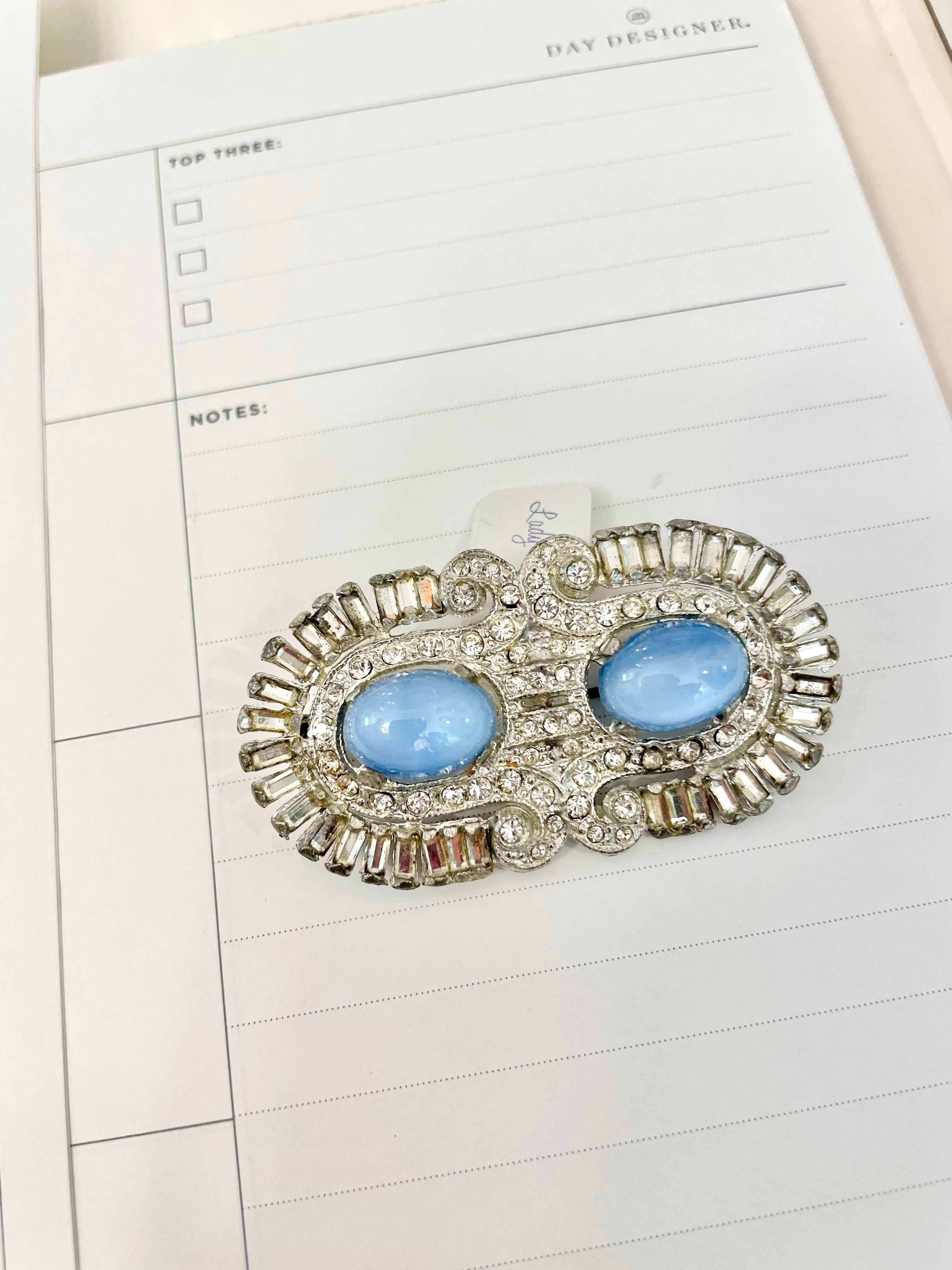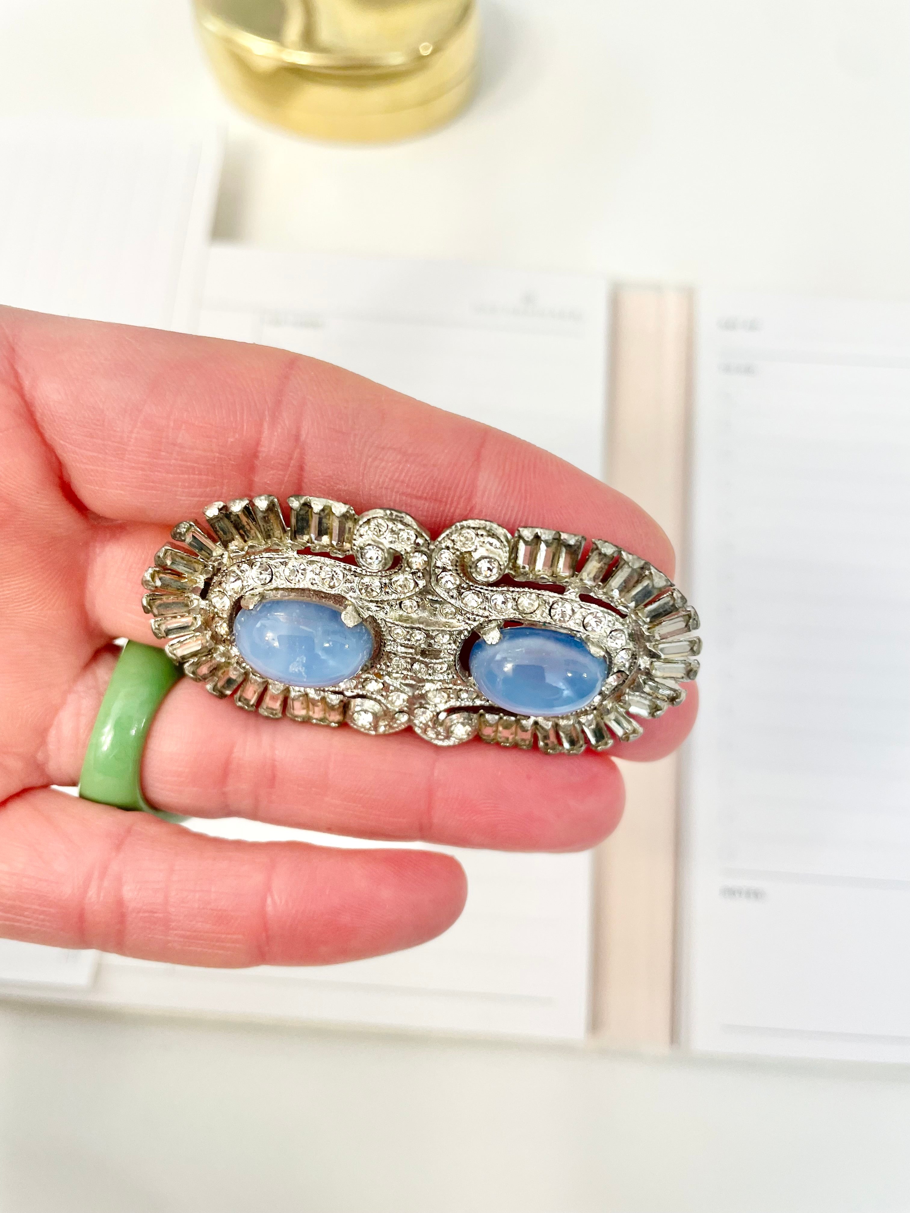 1940's stunning deco style brooch... I adore the blue moon glow glass stones.