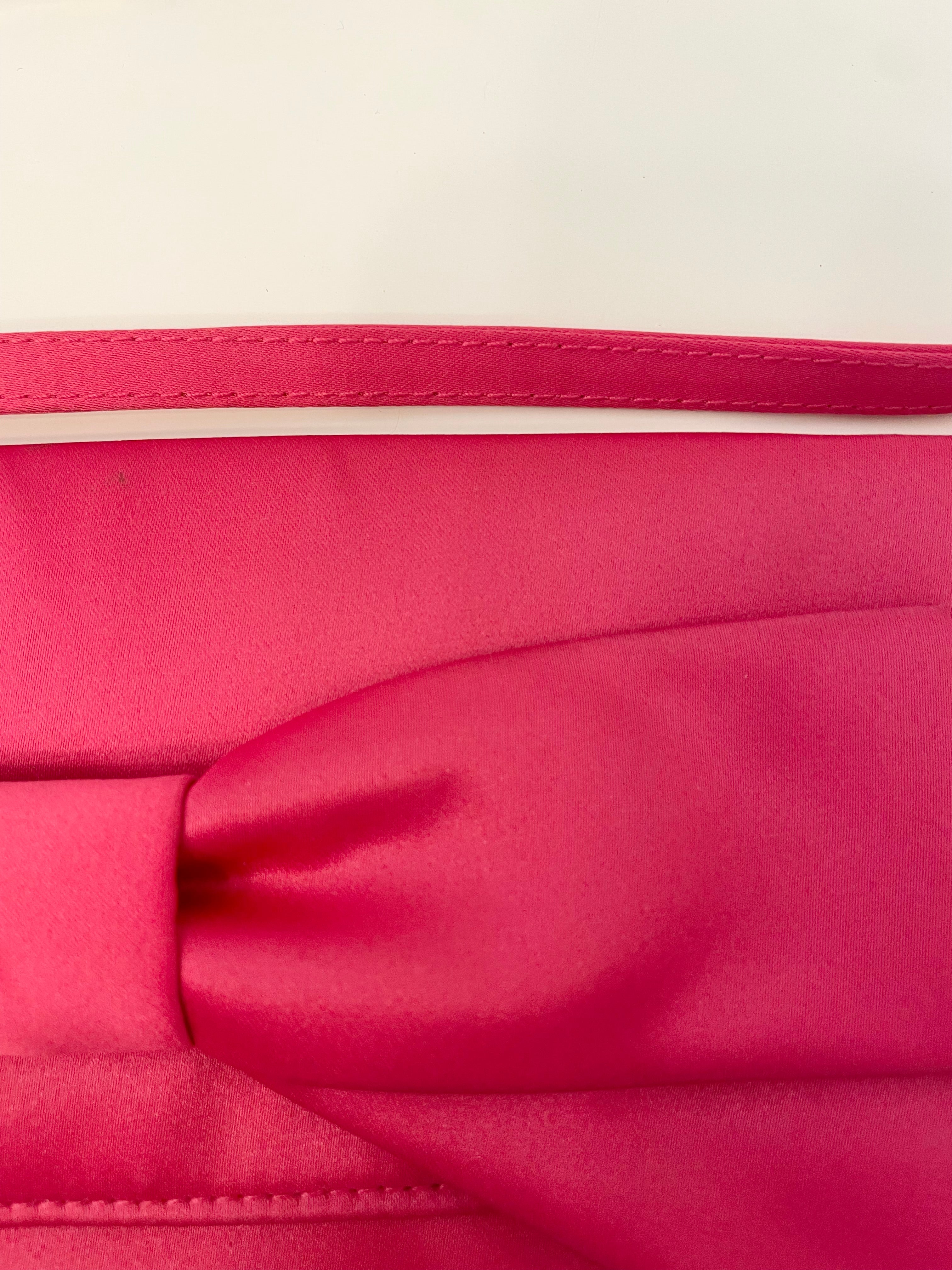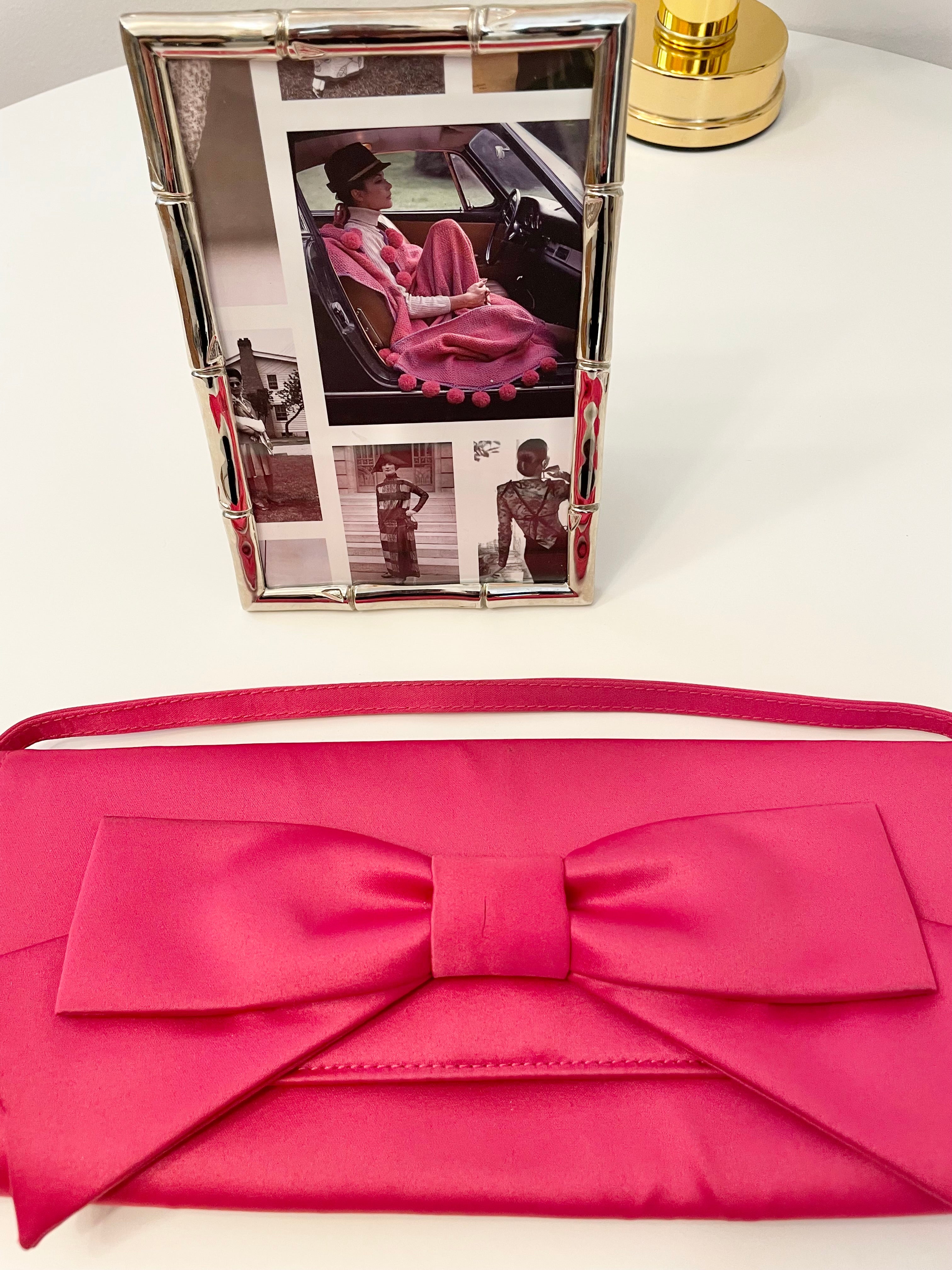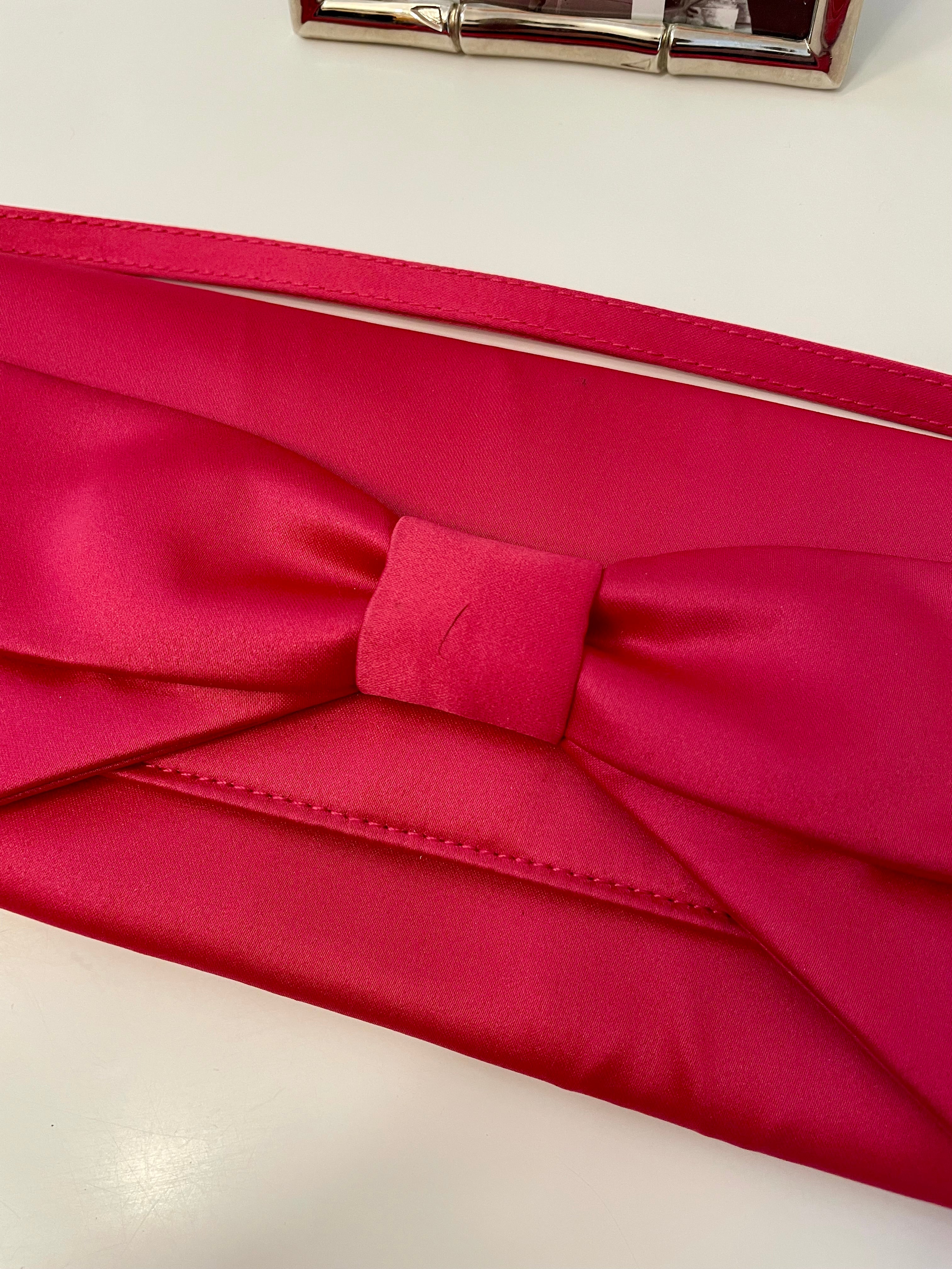 A truly lovely gem of a bag. I adore the classy bow! The color is perfect! All the ladies love a bow bag. A little classy, elegant, and old school preppy. A perfect pop of color. In excellent condition. Made beautifully...Just lovely. I can see this being worn with your holiday velvets, to your seersucker strapless dress... xo