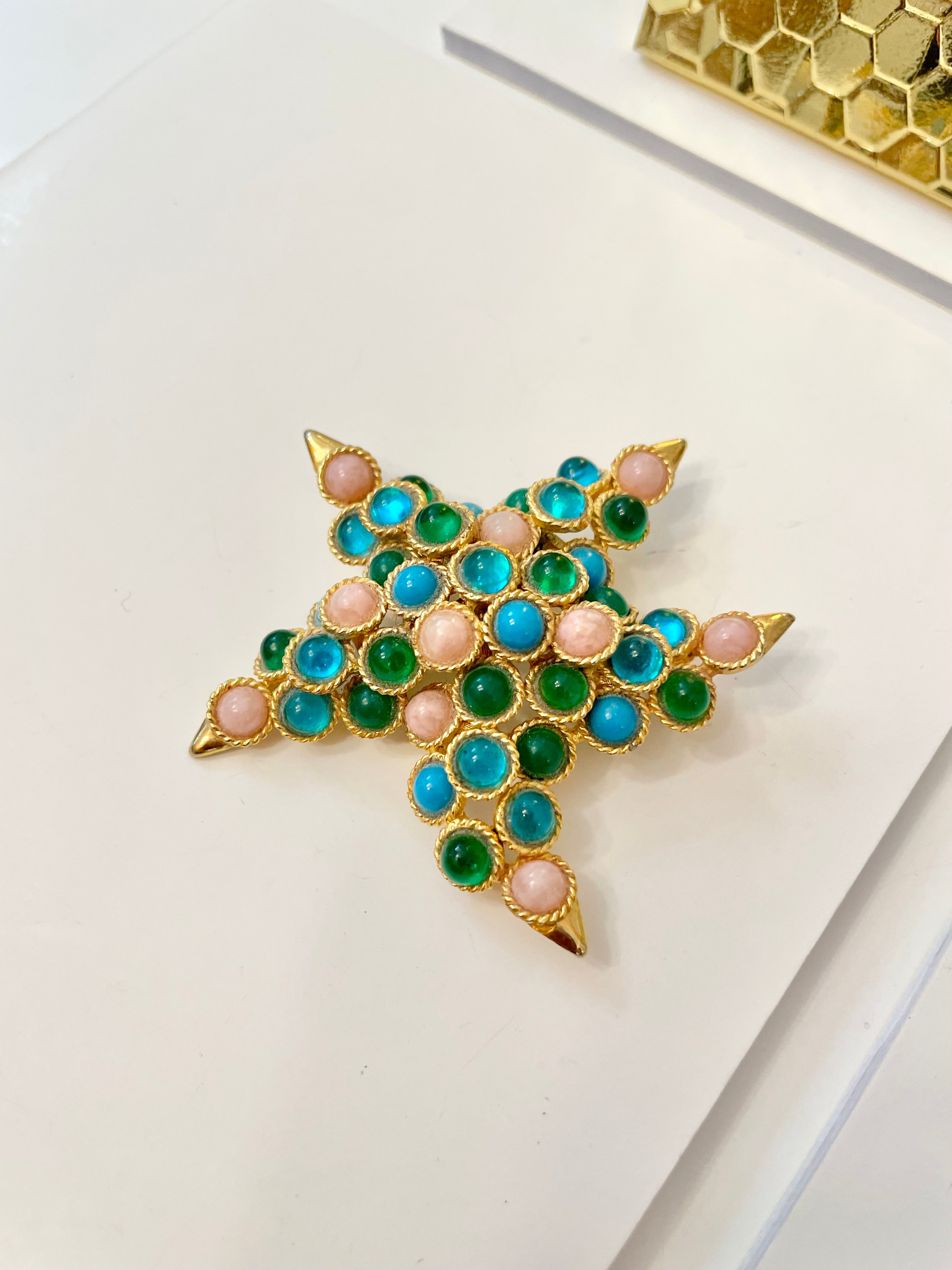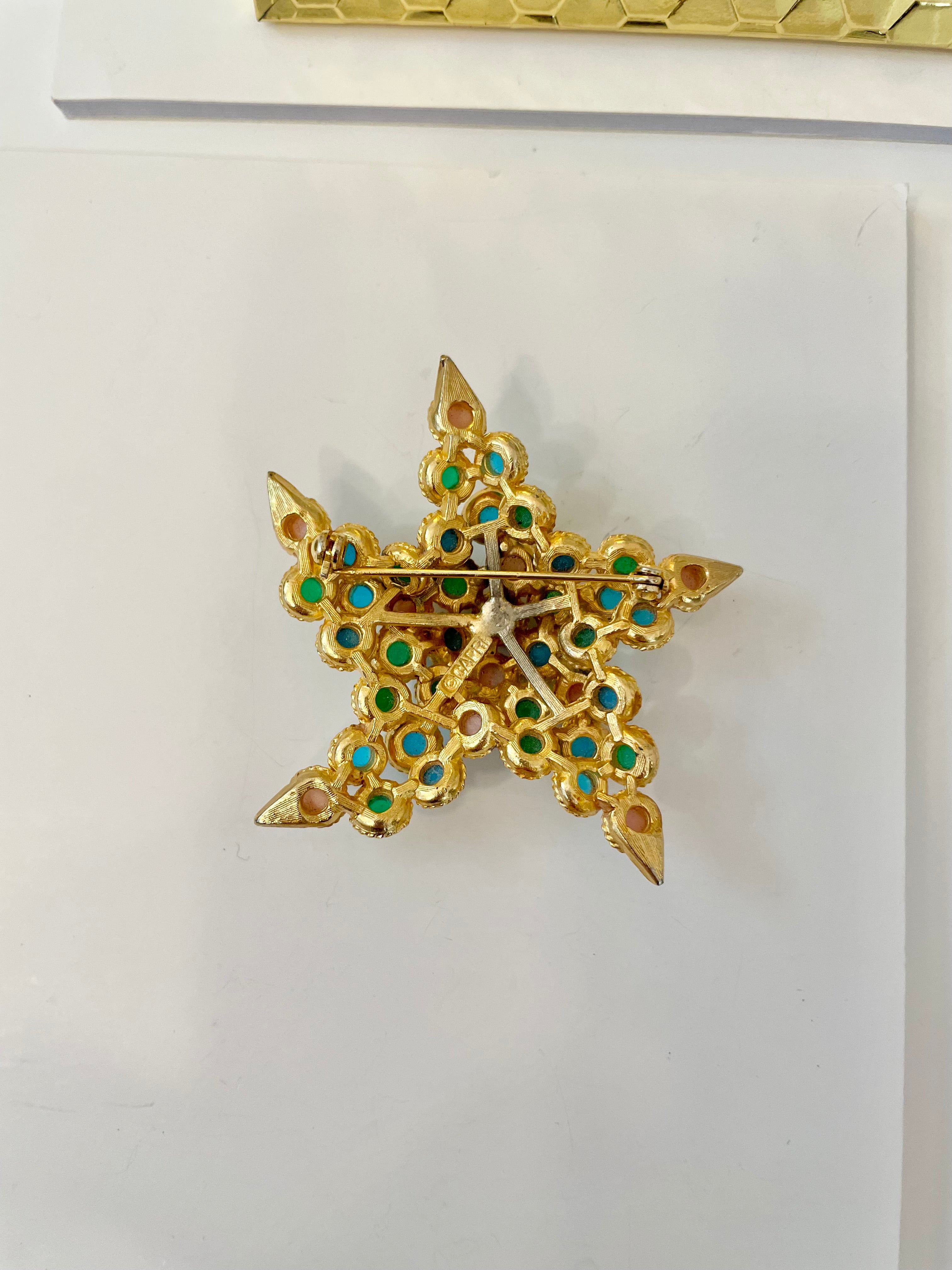 A true mid century gem! All the ladies in the 1960's loved a classic colorful brooch. This is truly stunning. A perfect pop of color. In excellent condition. Made beautifully, and high quality. I loved the colors together. Just lovely. I can see this being worn with your holiday velvets, to your seersucker strapless dress.