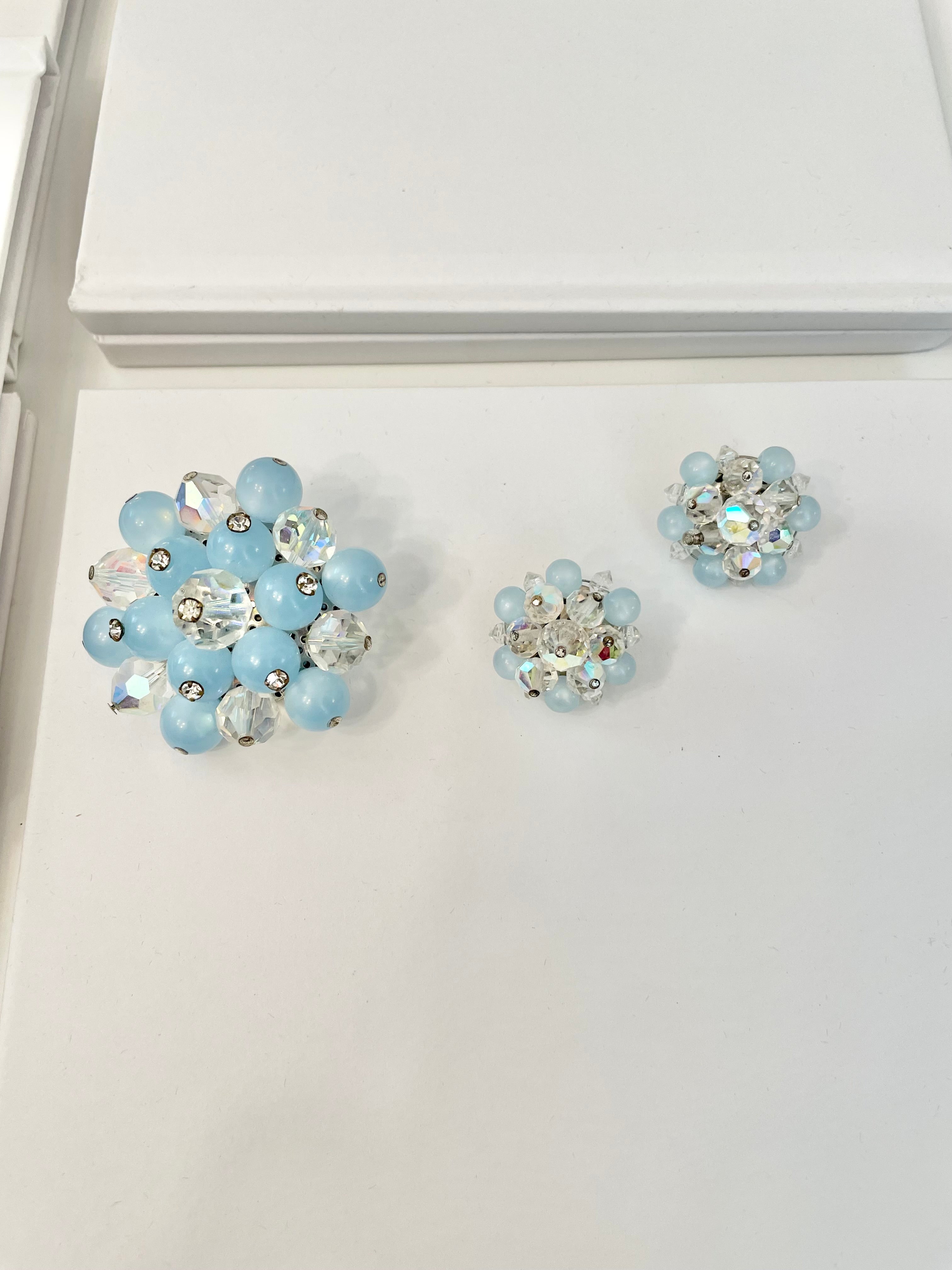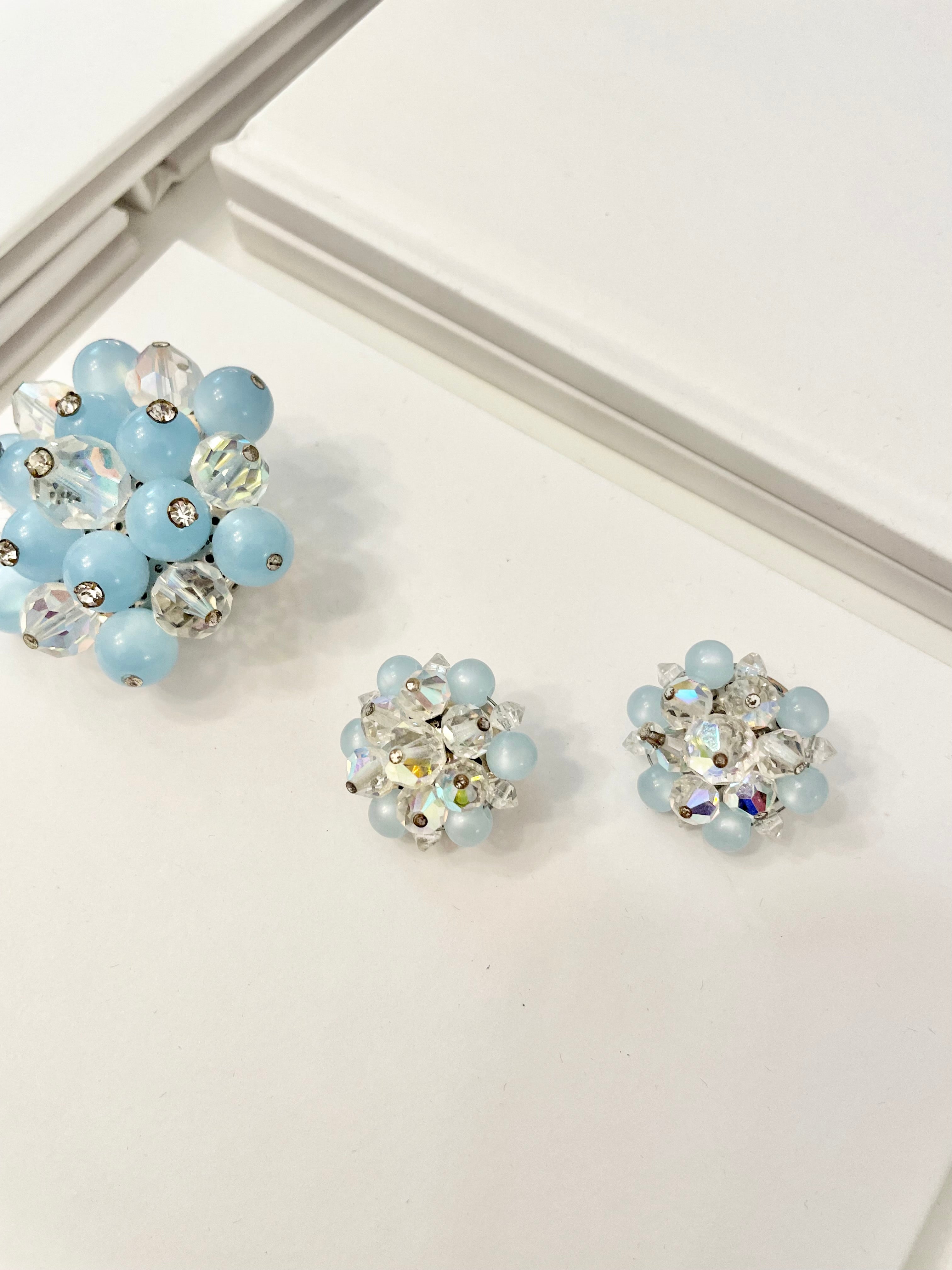 1960's Heiress and her love of the classic brooch, and matching earrings. Oh my! The soft blue with Austrian crystals is truly divine.