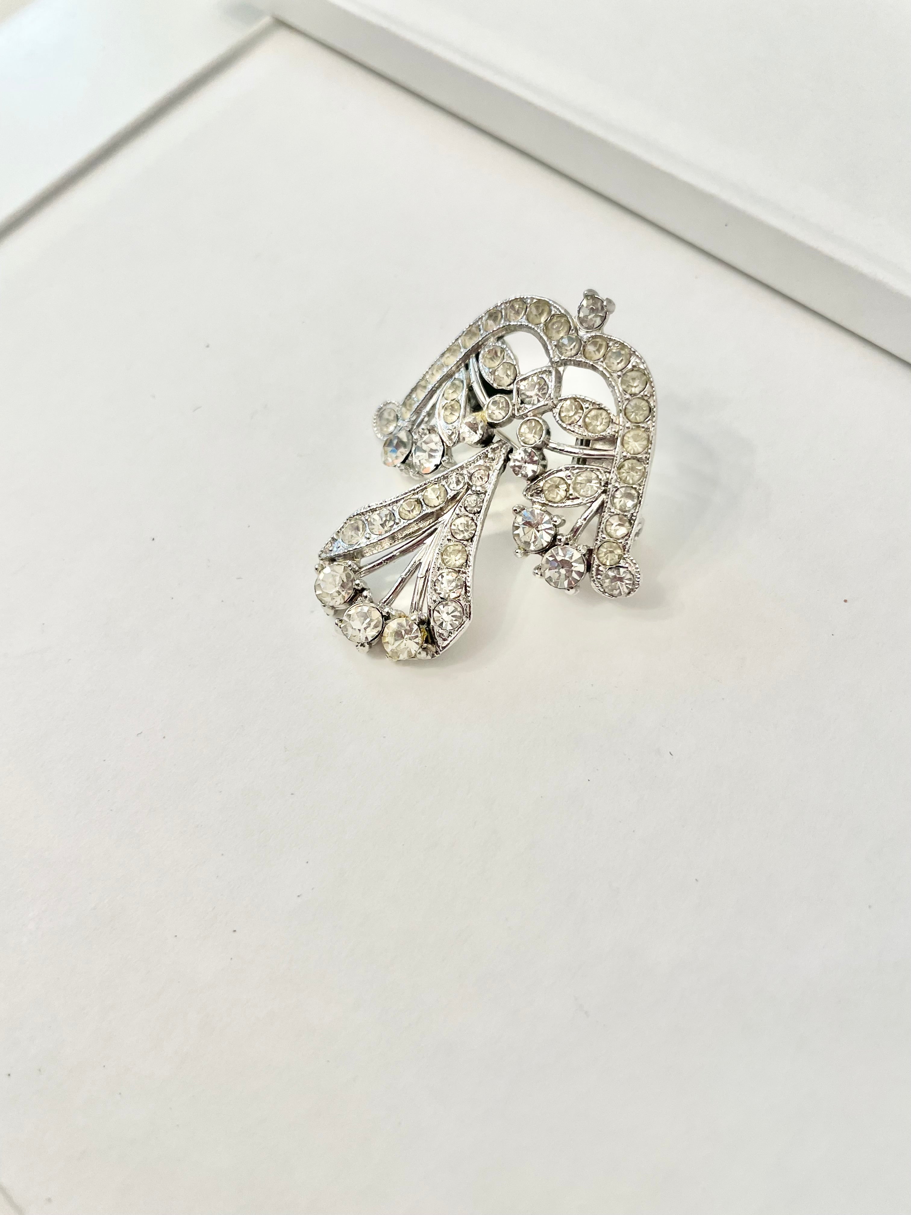 A truly stunning 1940's couture brooch... looks like fine jewelry. I love the way it was designed, has beautiful movement. All stones are present, and clear. Just divine!! High quality designed, made in France. High quality metal, and the artistry is outstanding. One of a kind perfection!