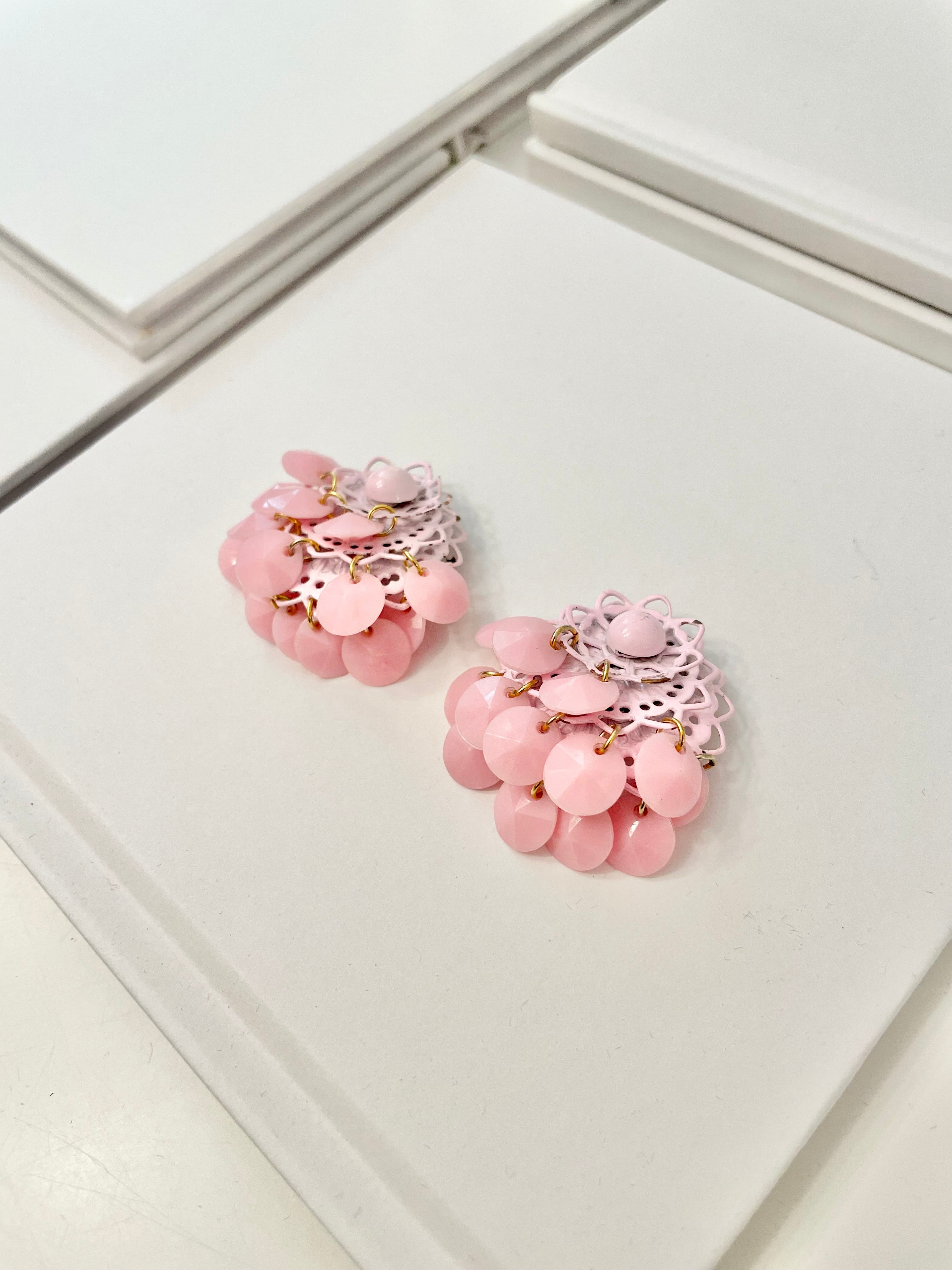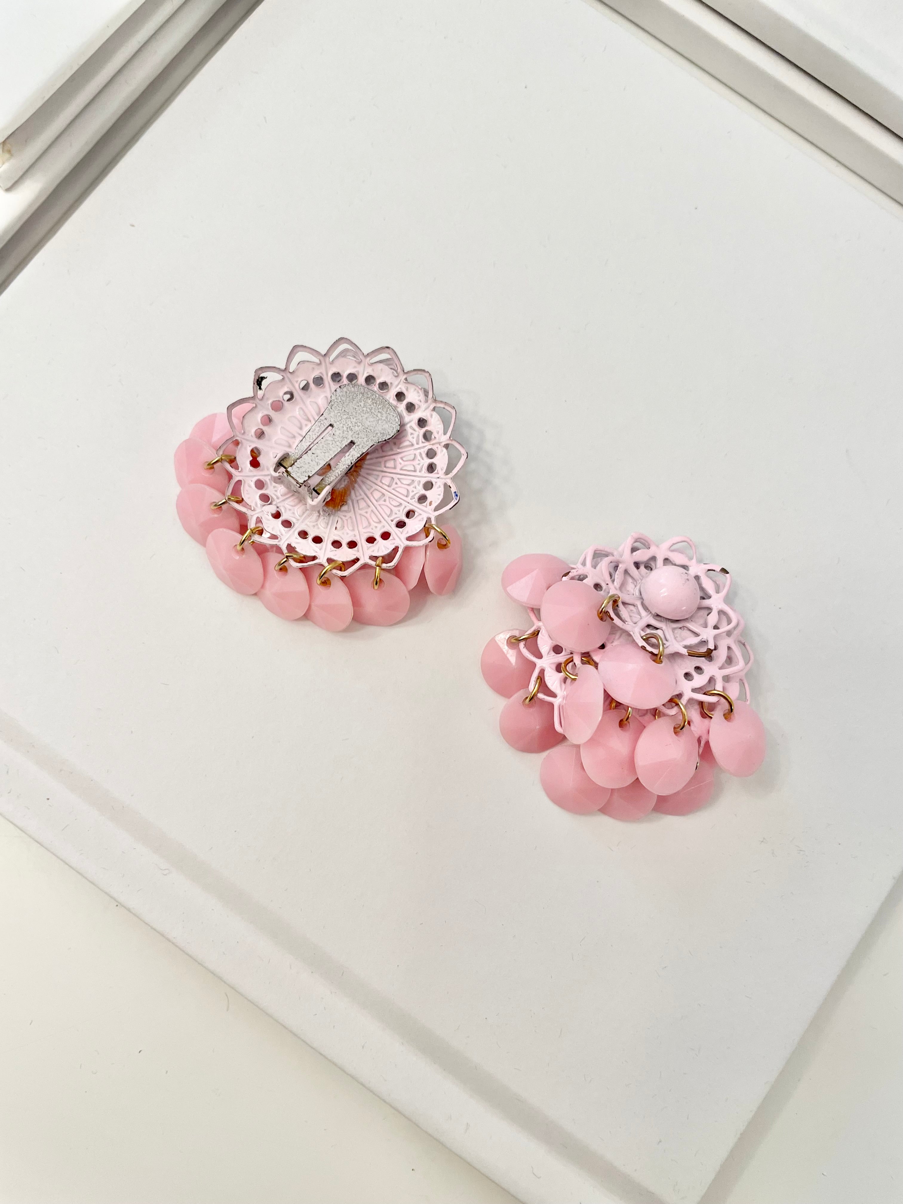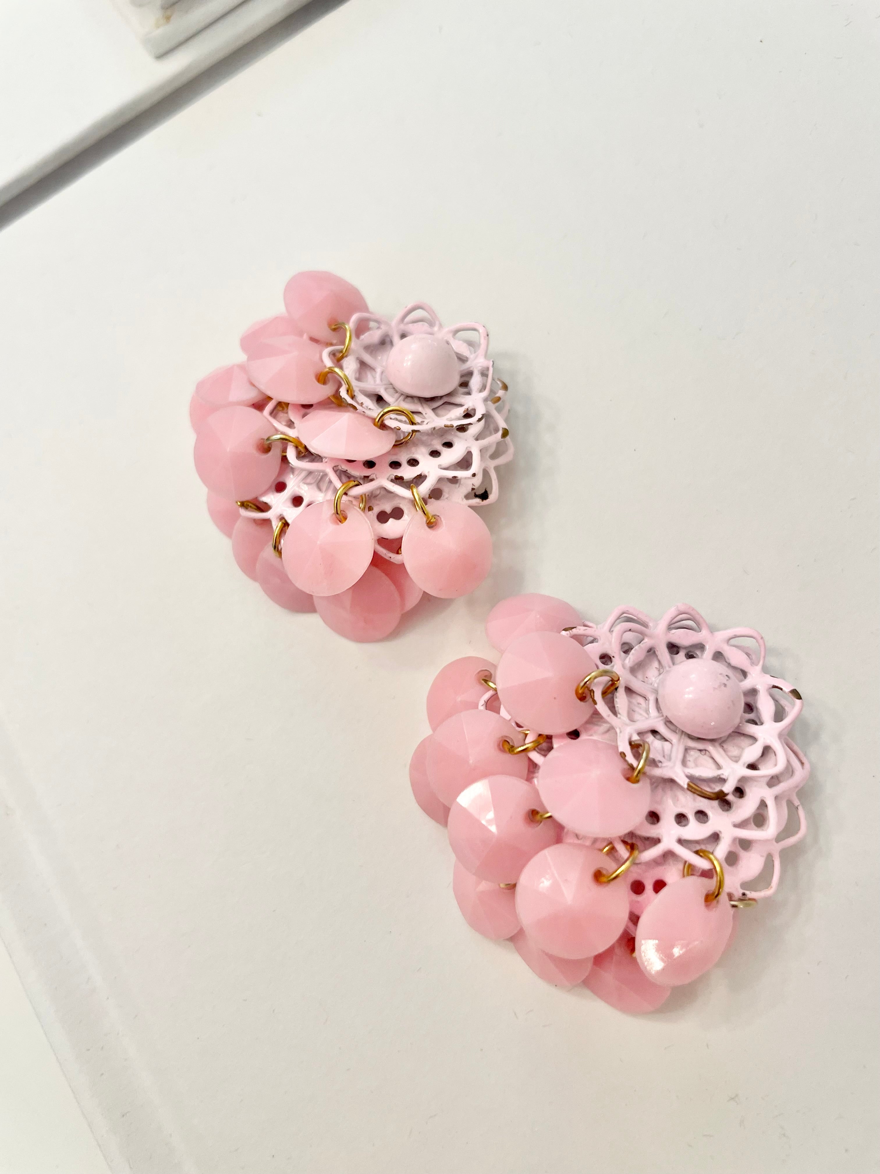 A true mid century gem! All the ladies in the 1960's loved a classic Cha Cha earring.... These are stunning. A perfect pop of color. Just lovely. I can see these being worn with your holiday velvets, to your seersucker strapless dress. Lovely feminine design, perfect soft pink color story. A tiny bit of wear to the metal, but still divine.