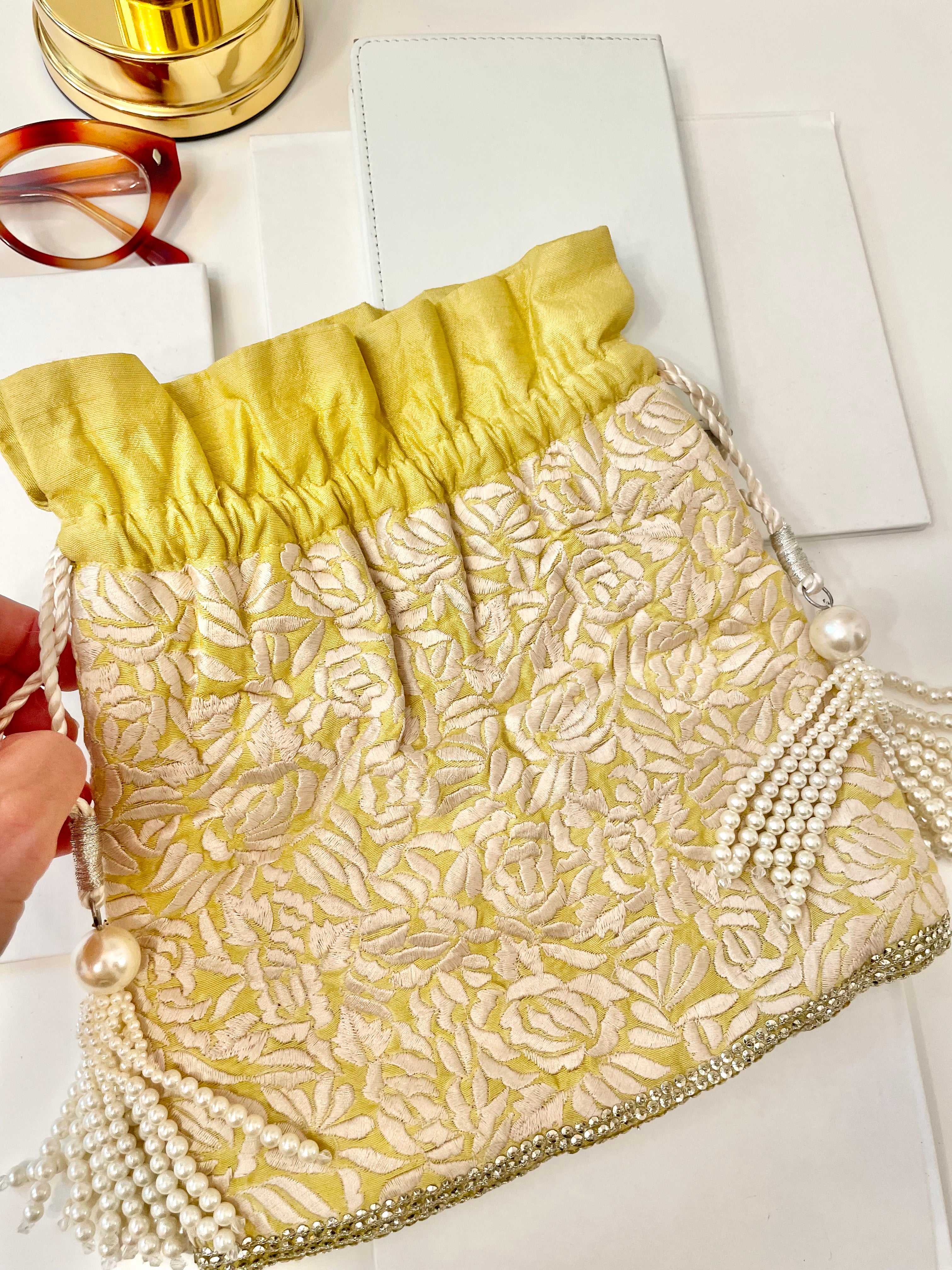 The Cheeky Mistress and her love of the unusual, unique, and ever so chic! This 1970's rare, and beautiful, rich, yellow embroidered, and pearl tassel clutch bag. I adore the color story, and the elegance of this bag. In excellent condition. So divine, one of a kind!