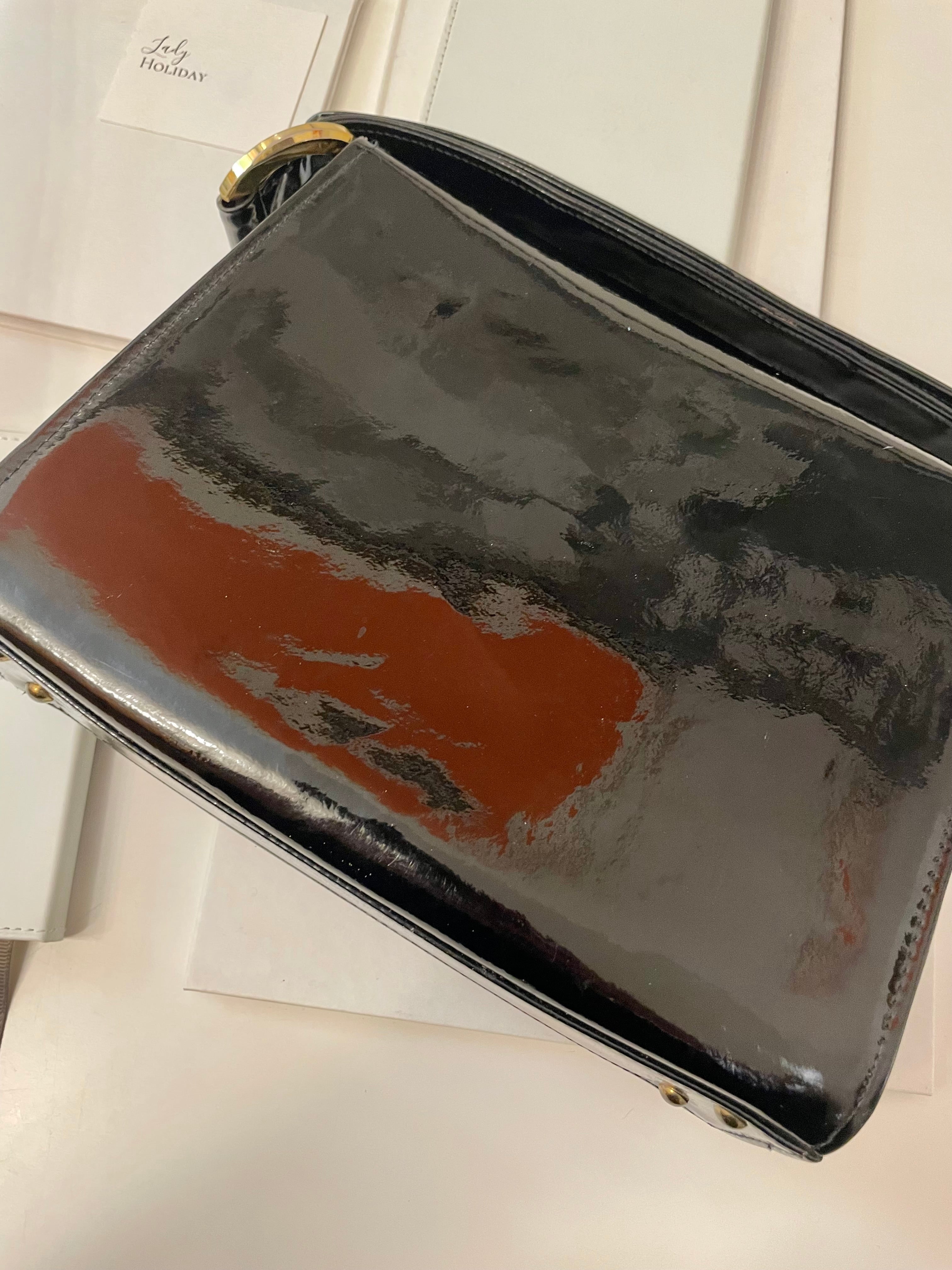 Vintage classy Saks Fifth Ave, black patent leather Kelly style bag... so classic!