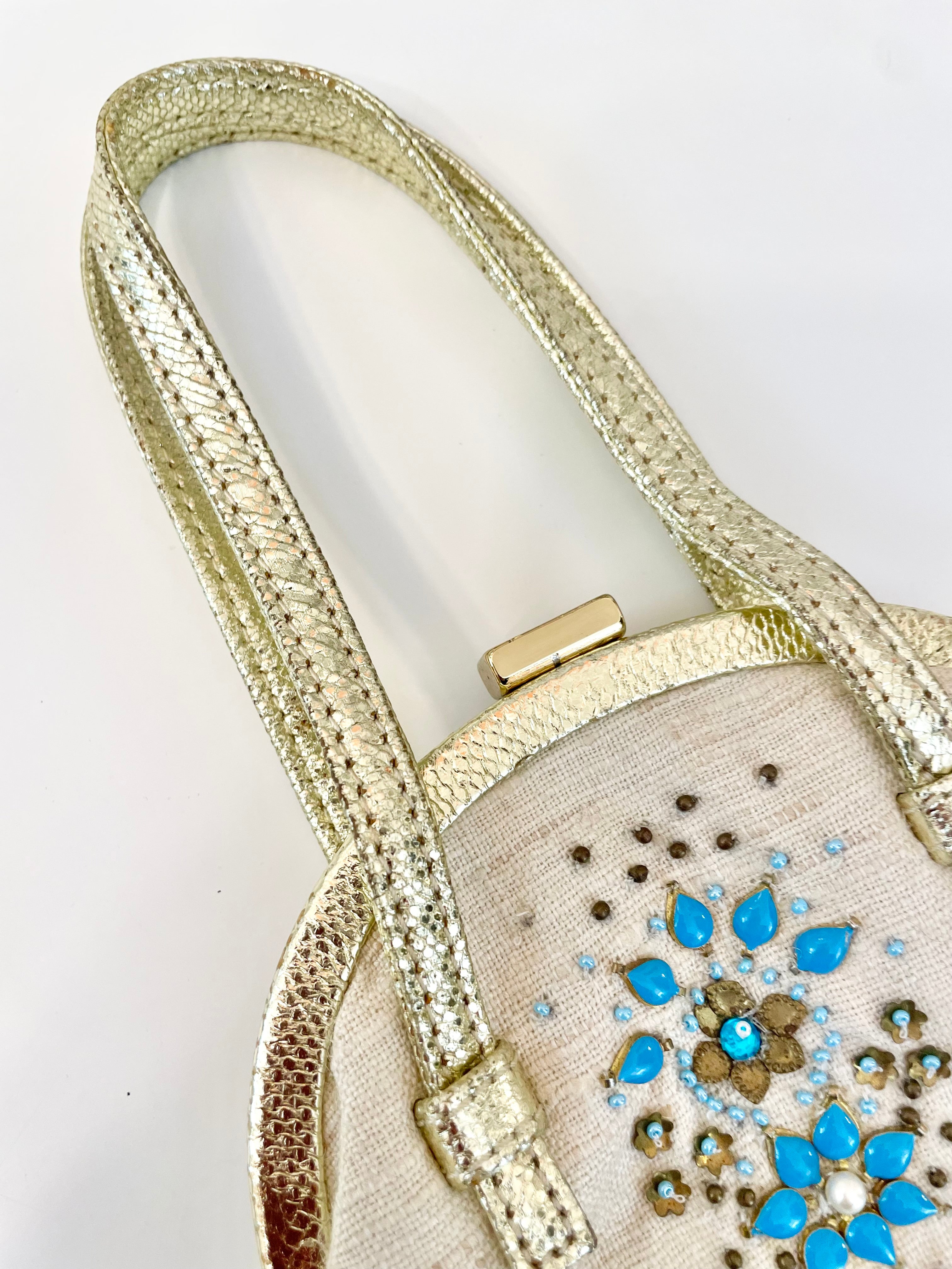 The most divine Rafe colorful beaded bag trimmed in gold leather... so feminine